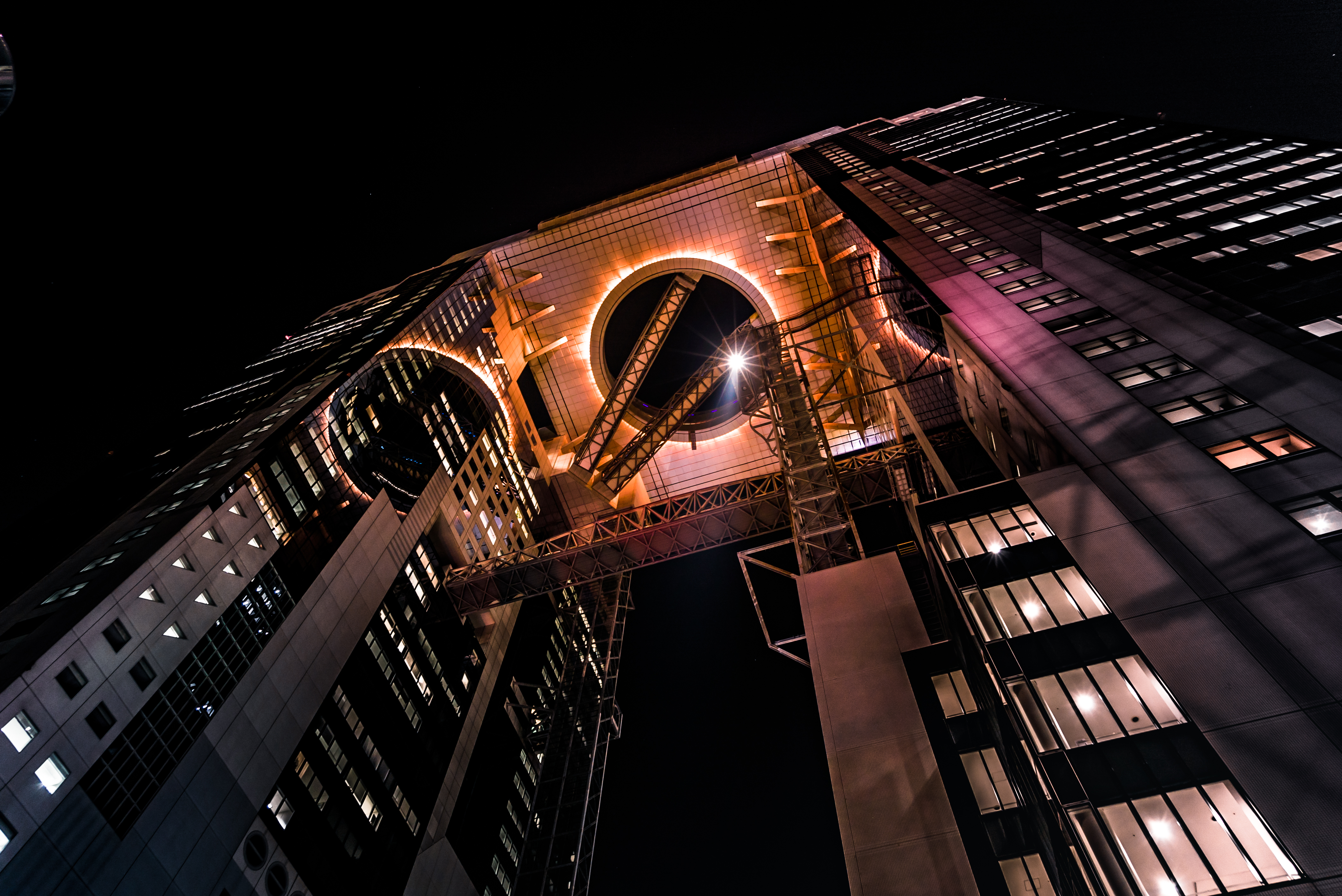 Japan is the land of the future. Osaka has two major skyscrapers, Abeno Harukas and Umeda Sky Building. Both are open for tourists and this particular building has two tube escalator going cross a gap between two huge skyscrapers. There is also a viewing platform and a skybar at the top.
